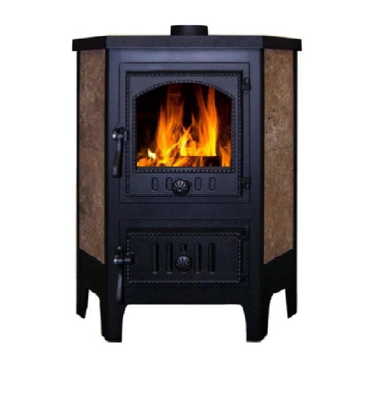Печь-камин Экокамин Бавария угловая чугун с плитой