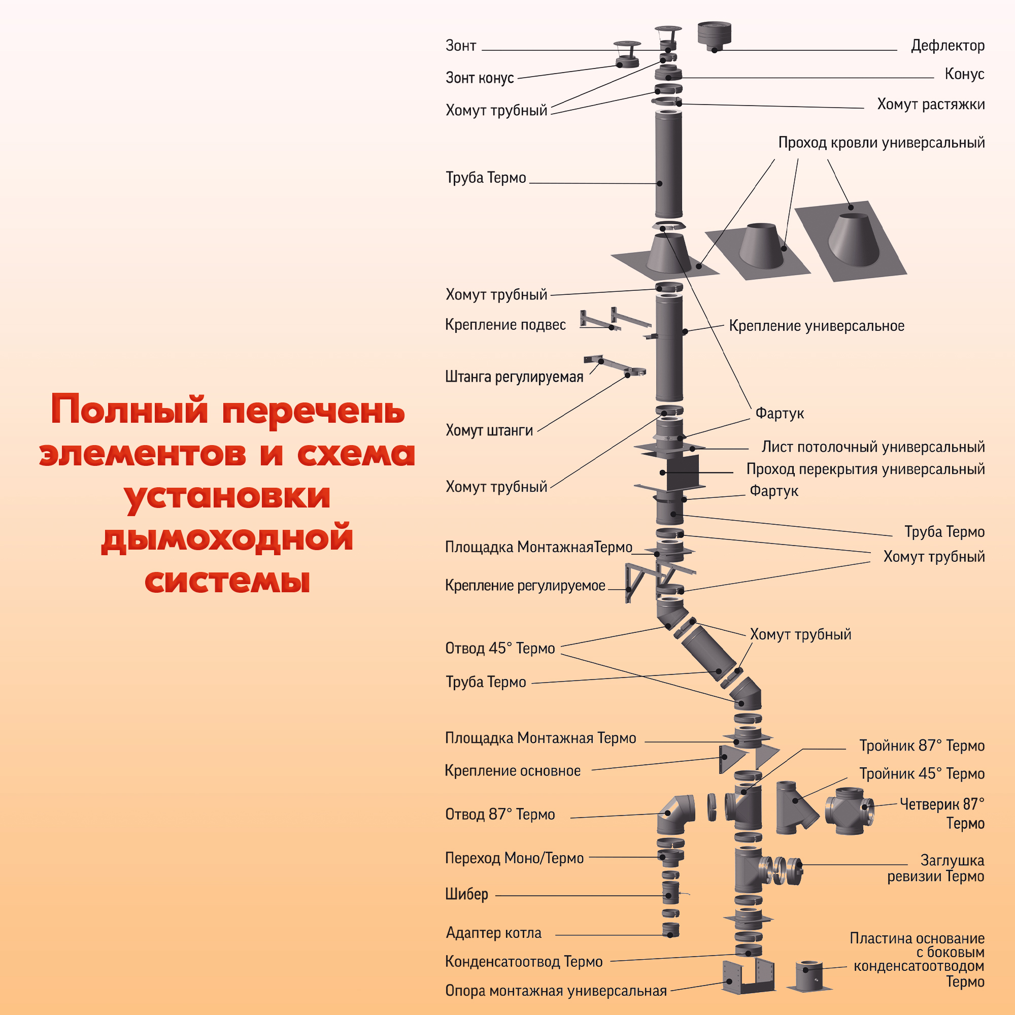 В нашем магазине печей, котлов и дымоходов, кстати, уже имеются все комплектующие для монтажа системы отвода дыма: